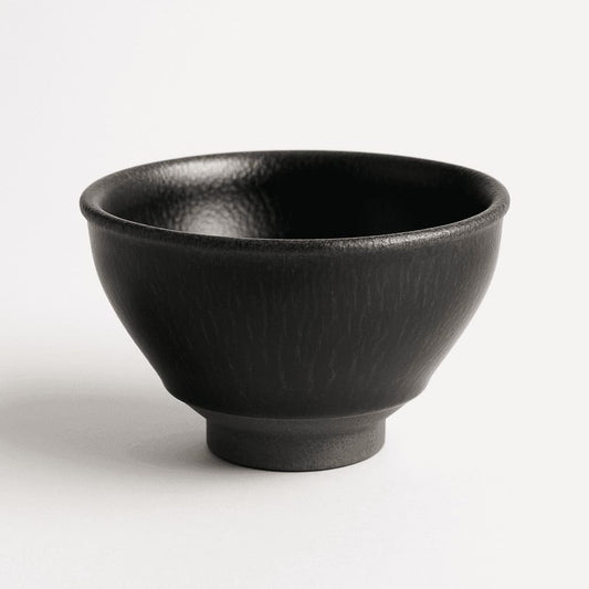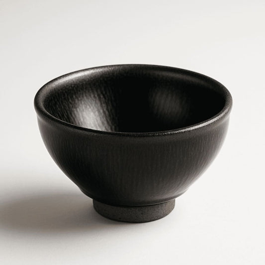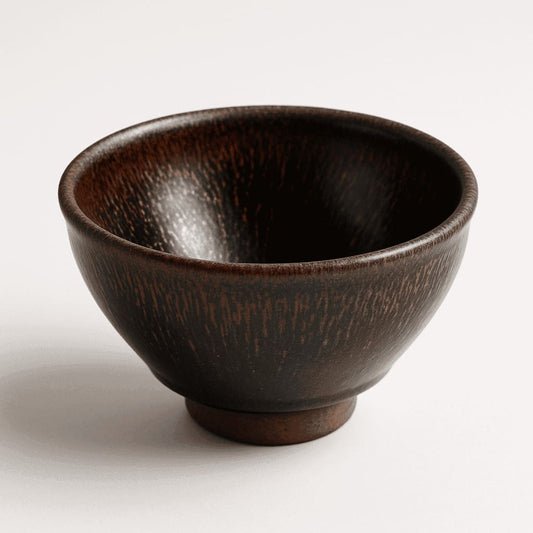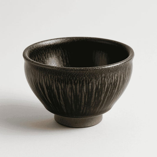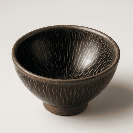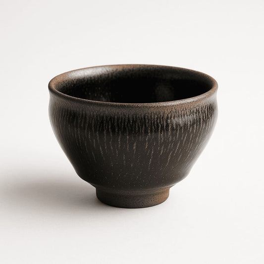 Fine streaks flow gently down the vessel, resembling strands of hare’s fur—elegant and restrained.